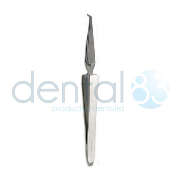 Instrumento esterilizable de acero inoxidable alemán, con una parte activa corta y plana para colocar los brackets.