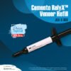 3M™ RelyX™ Veneer Cemento para Carillas: Es un sistema de cementación a base de resina para carillas 100% fotopolimerizable con gran estabilidad de color. Relyx Venner cuenta con un sistema de tonos y de dispensado, Las pastas de prueba (try-in) proporcionan excelente coincidencia de tonos con el cemento curado final,