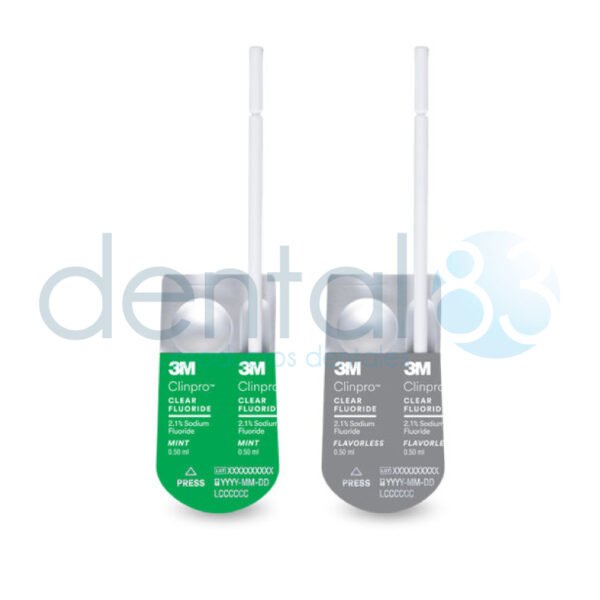 El tratamiento con fluoruro transparente 3M Clinpro tiene un pH neutro y contiene 2,1 % de fluoruro de sodio (9500 ppm de iones de fluoruro) y xilitol. El recubrimiento de fluoruro es una solución a base de agua. que contiene tecnología de fosfato de calcio estabilizado. El producto se suministra en envase L-Pop monodosis. Que contiene 0,5 ml (0,5 g de Clinpro Clear Tratamiento de Flúor. Cada dosis de 0,5 ml contiene 10,5 mg de Fluoruro sodio, equivalente a 4,75 mg de ion fluoruro).