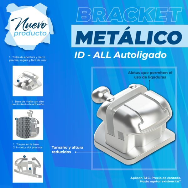 Innovación en el concepto de autoligado. El ID-ALL DUO elimina la necesidad de ligadura elástica, cuenta con un slot auxiliar para mayor versatilidad y más posibilidades en los tratamientos, con un diseño mejorado y aún más anatómico.
